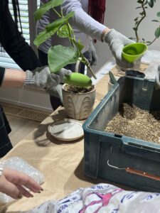 ワークショップでは観葉植物の鉢植えをご参加の皆様が実践。