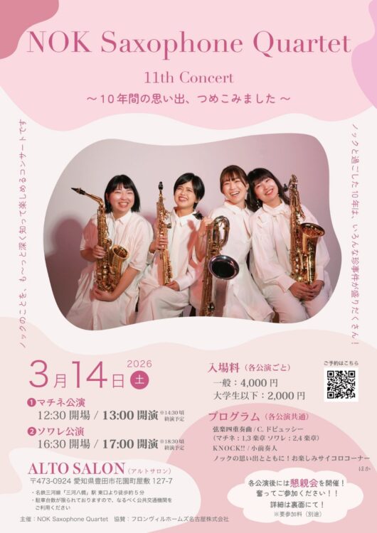 3月14日(土)NOKサクソフォンカルテット 11th Concert