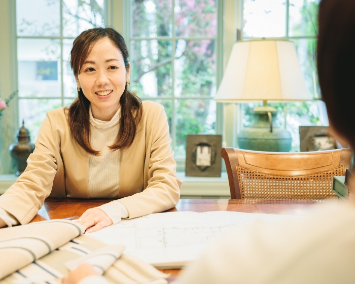 設計の仕事は、お客様の「こんな家に住みたい!」という夢を形にするため、お客様と直接お話ししてゼロから設計やプランの立案を行います。流れ作業の一部ではなく、一人ひとりのお客様の家をゼロから設計し、最後まで携わることができることが魅力の一つです。