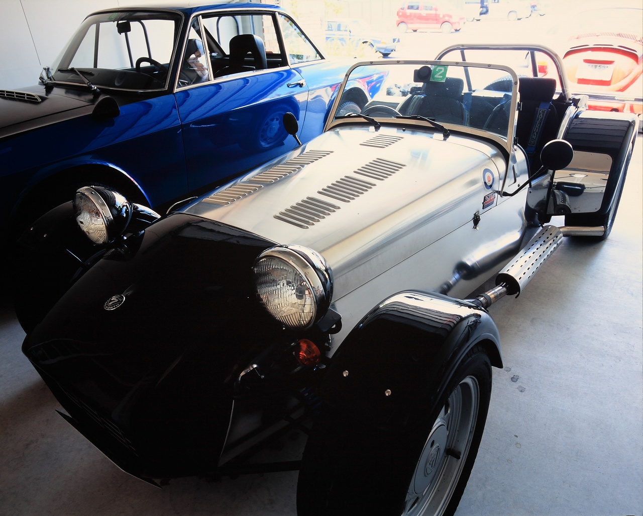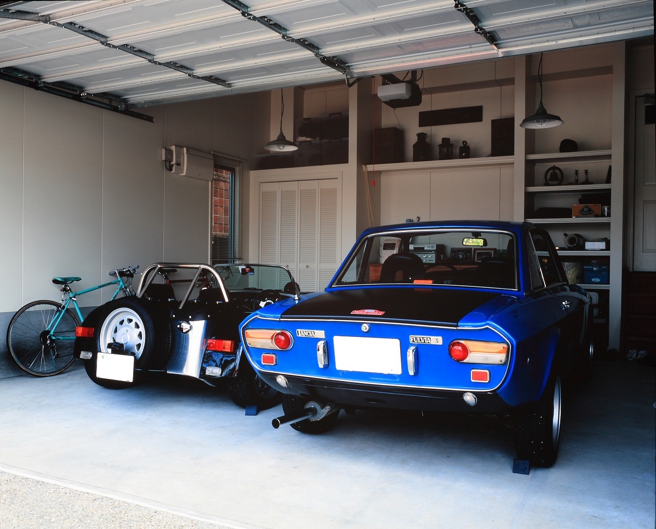 スポーティかつクラシカルなクルマが目を引くガレージ。