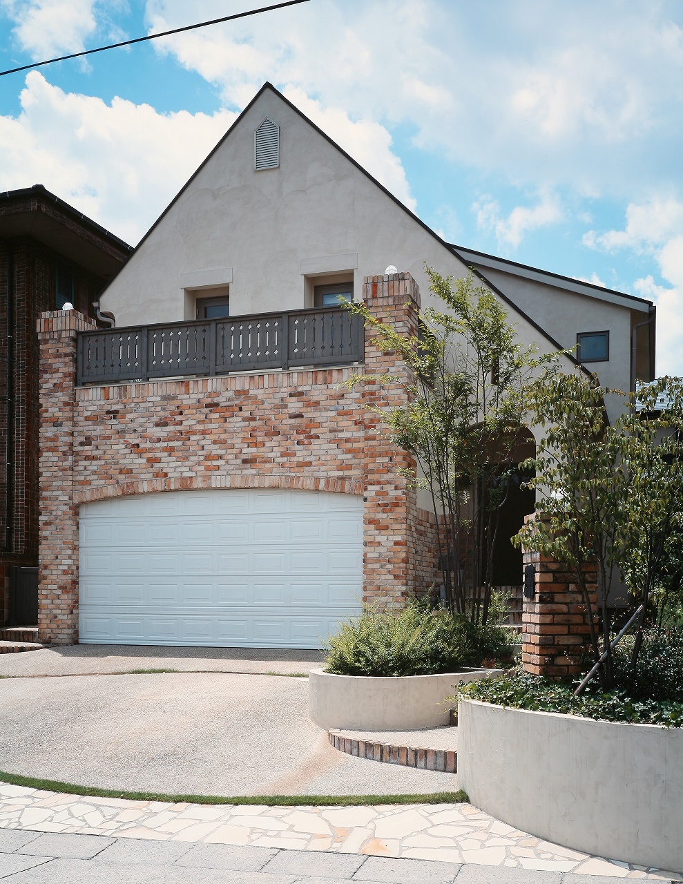 落ち着いた色彩とレンガの風合いが織りなす上品な印象の外観。