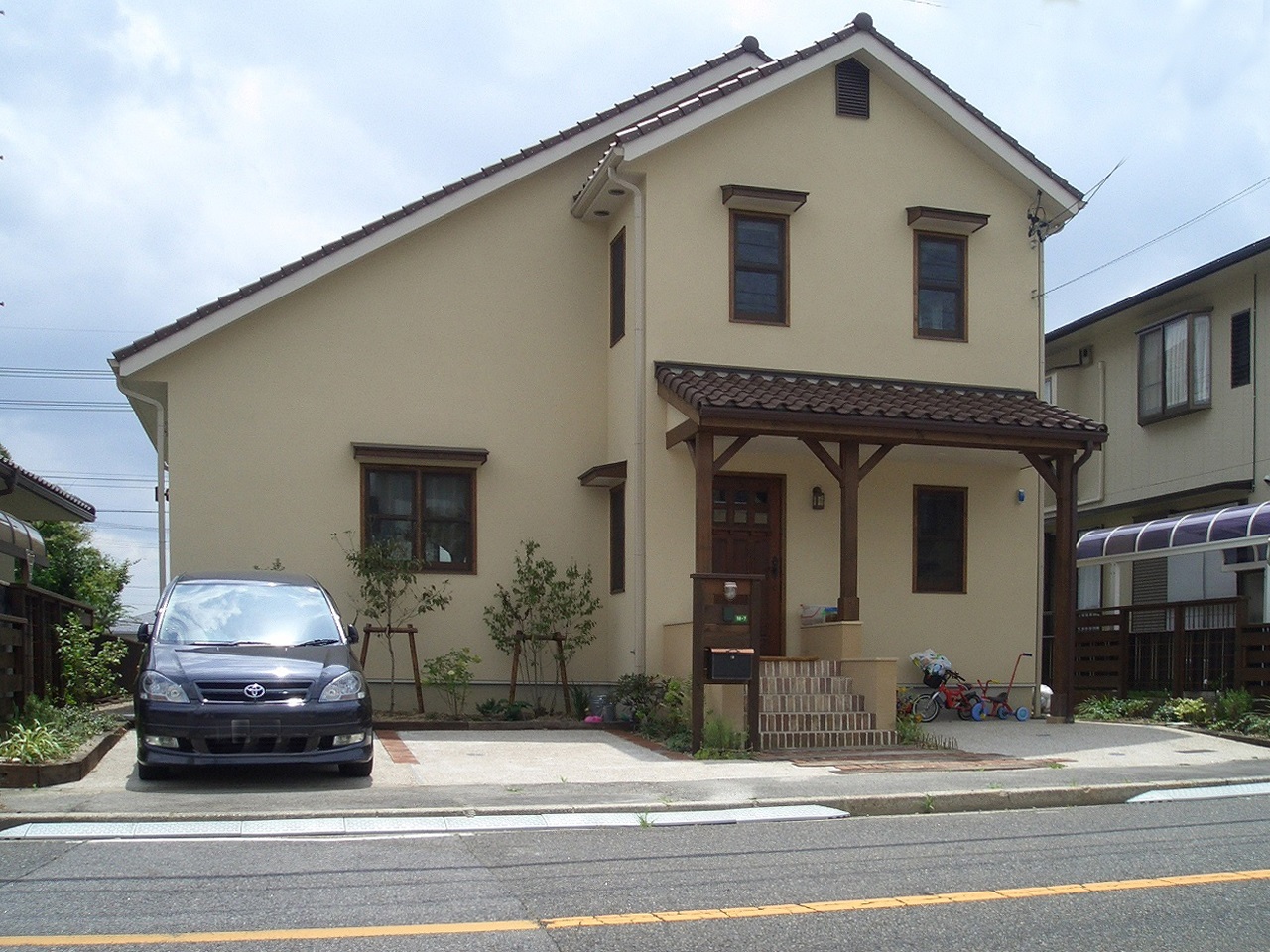 外観は「素朴な田舎家風」をイメージしたそう。外観と落ち着いたLDKのギャップに驚くゲストも多いとか