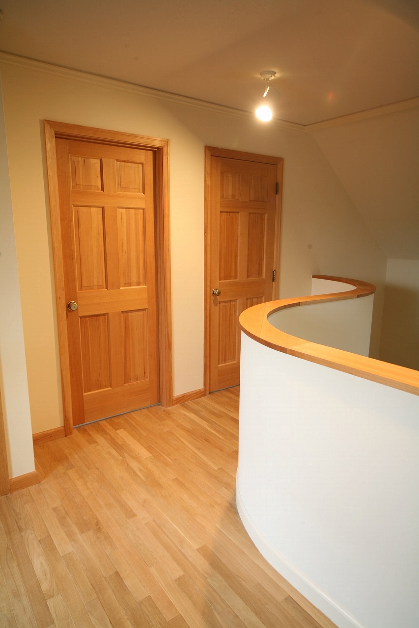 リビングから見上げたアールの部分は、片隅にアンティークの椅子を置いたホールになっている。