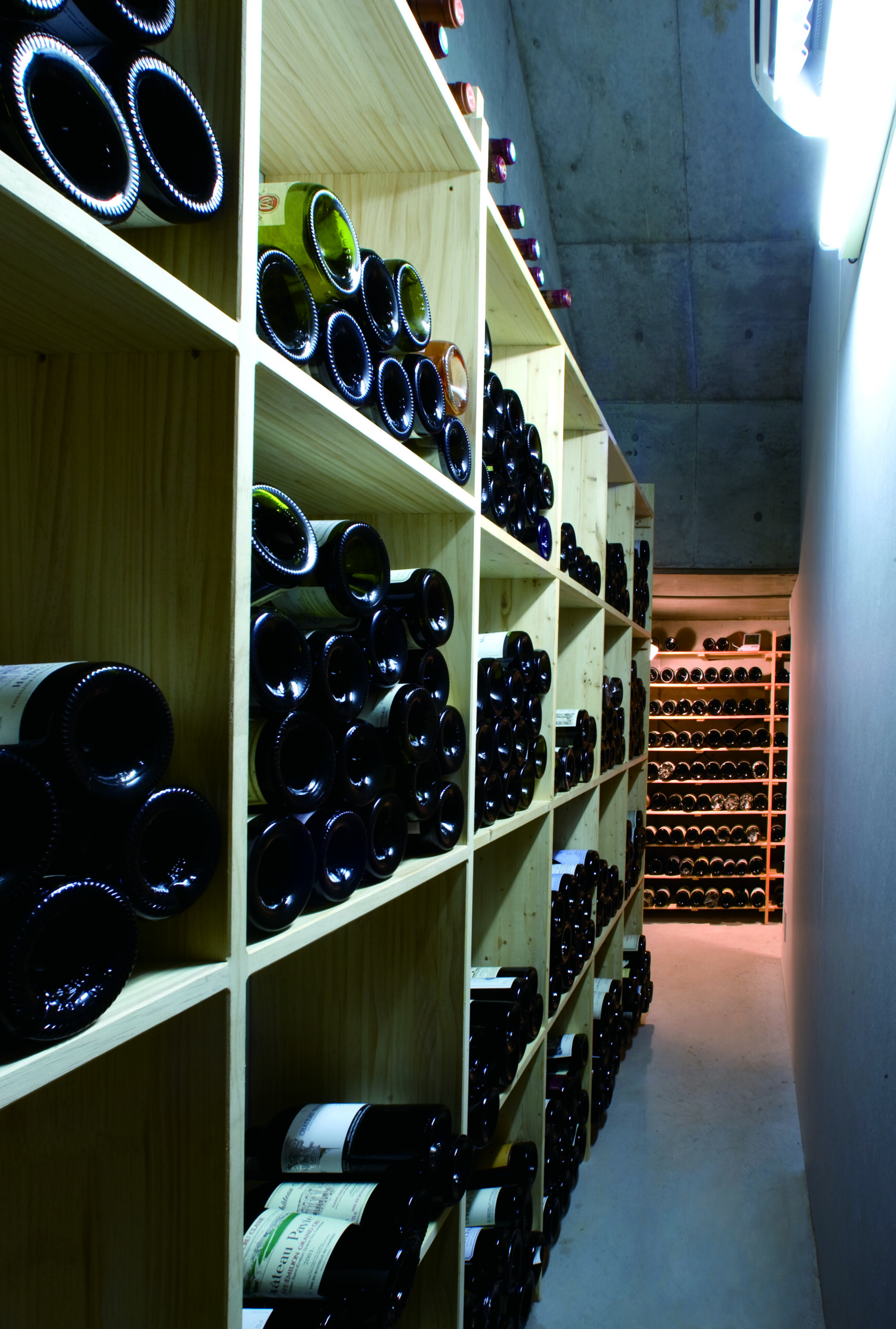 ワインセラーを地下ガレージの一面に設置。温度管理されたワインセラーの中には、600本以上のワインが並んでいるそうです。各国別に棚を設け、整理されているそう。