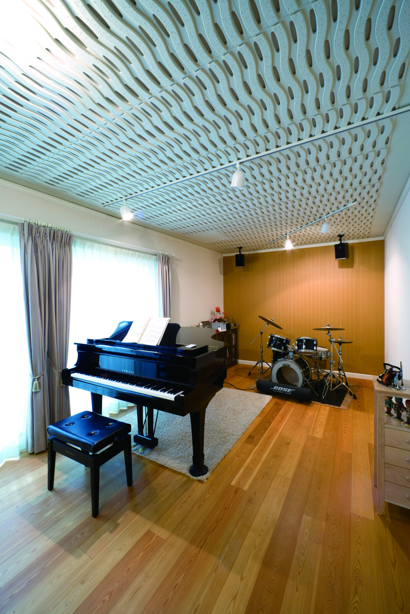 ジャズピアノやドラムを演奏するKさんがこだわった音楽ルームは、反響に配慮し、何度も試行錯誤を重ね、作り替えました。