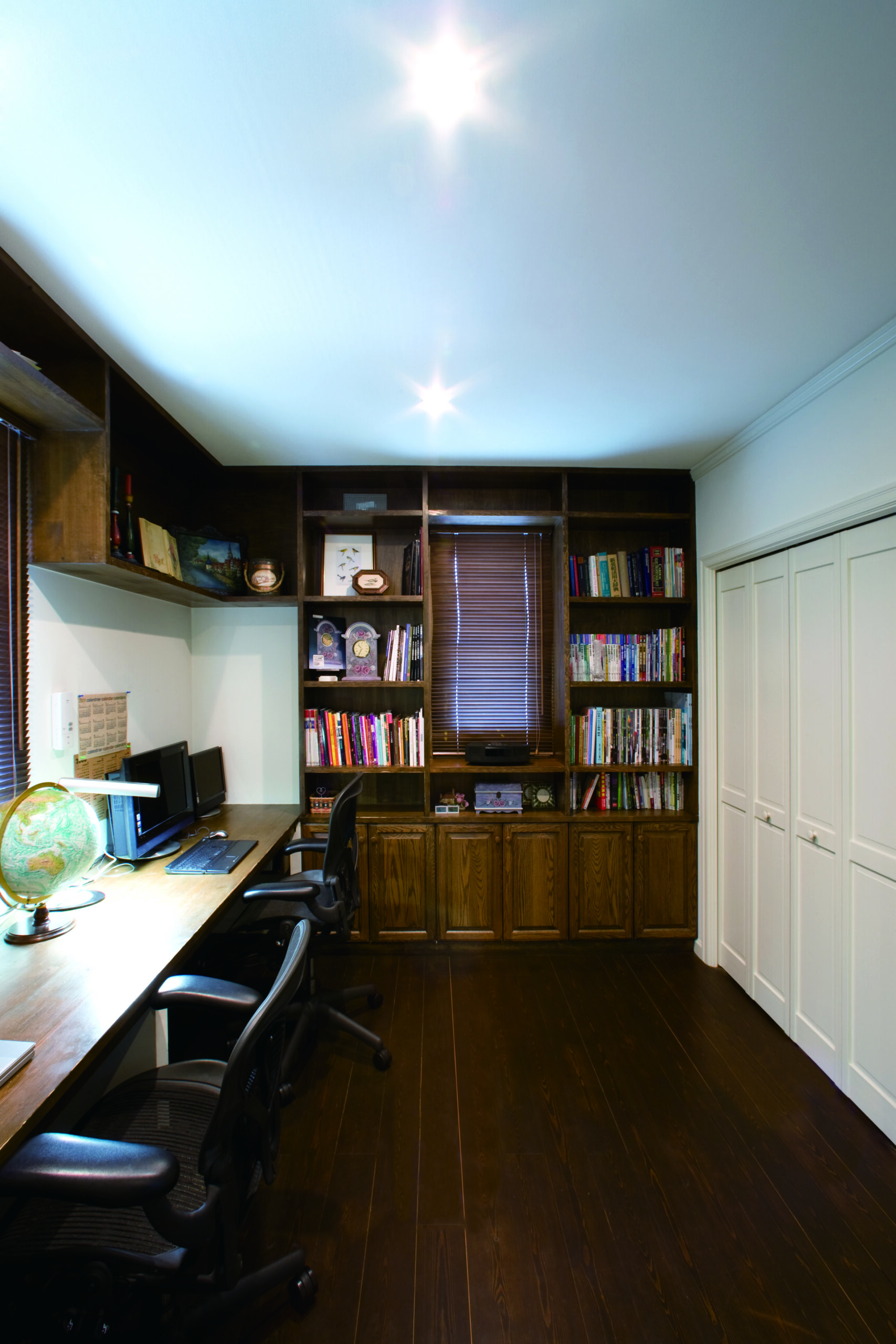 自宅で仕事をされることも多く、書斎はたってのご希望でリビングとつながっている。