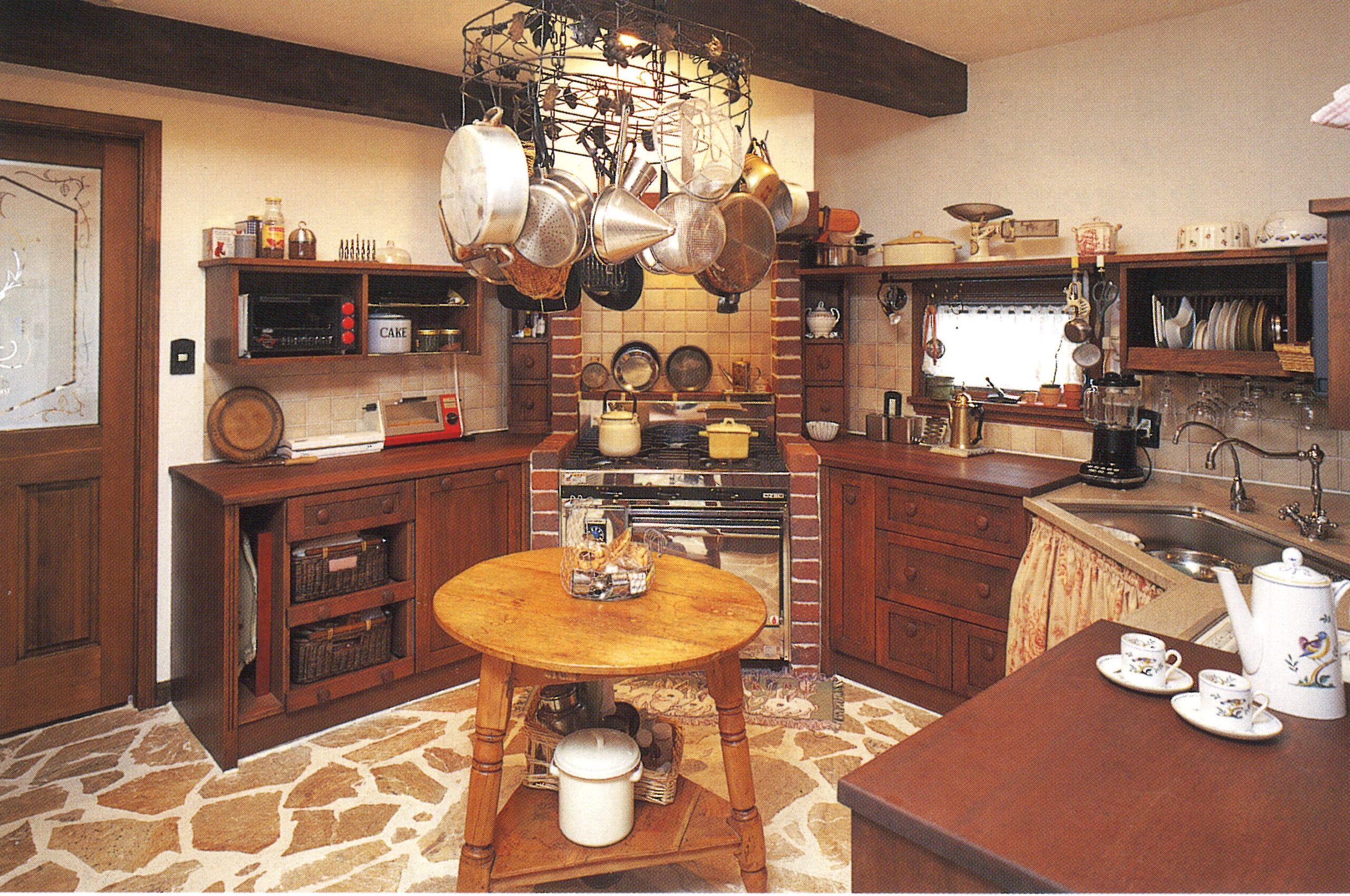 「なぜか子どものころ読んだ絵本に出てくるモグラの家に愛着があるんです」その穴蔵のようなぬくもりのある理想郷は、キッチンを舞台に繰り広げられます。ヨーロッパ(イギリス)の田舎に建っている、土っぽい家(それは決してパイン材でもたらされるようなカントリーではない)へのあこがれがあり、このキッチンに奥様の長年の思いが集約されています。