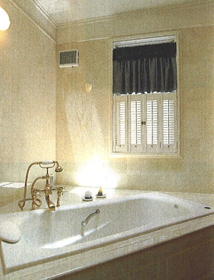 グランジョージアンのデザインと、本物の家具を使ったコーディネートに自分たちの好みに近いものを感じられたそう。グランジョージアンの面影を残す外観はいたってシンプルで、室内にこのような空間があるとは予想できません。