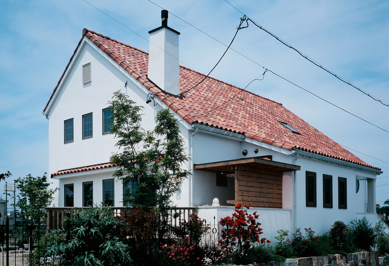 高気密高断熱の注文住宅、漆喰壁に赤いスペイン輸入瓦