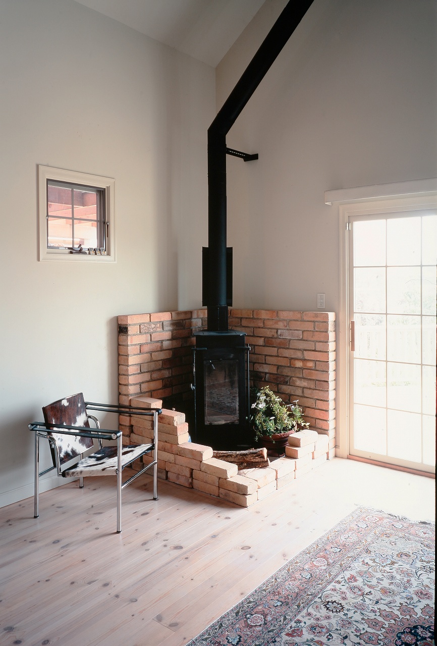冬場には、ほとんど毎晩のように薪を燃やしていらしたという。ストーブは縦にスリムなタイプ。車の音やカエルの大合唱も窓を閉めればシャットアウト。「遮音性と断熱性には驚いています」と、おっしゃっている。