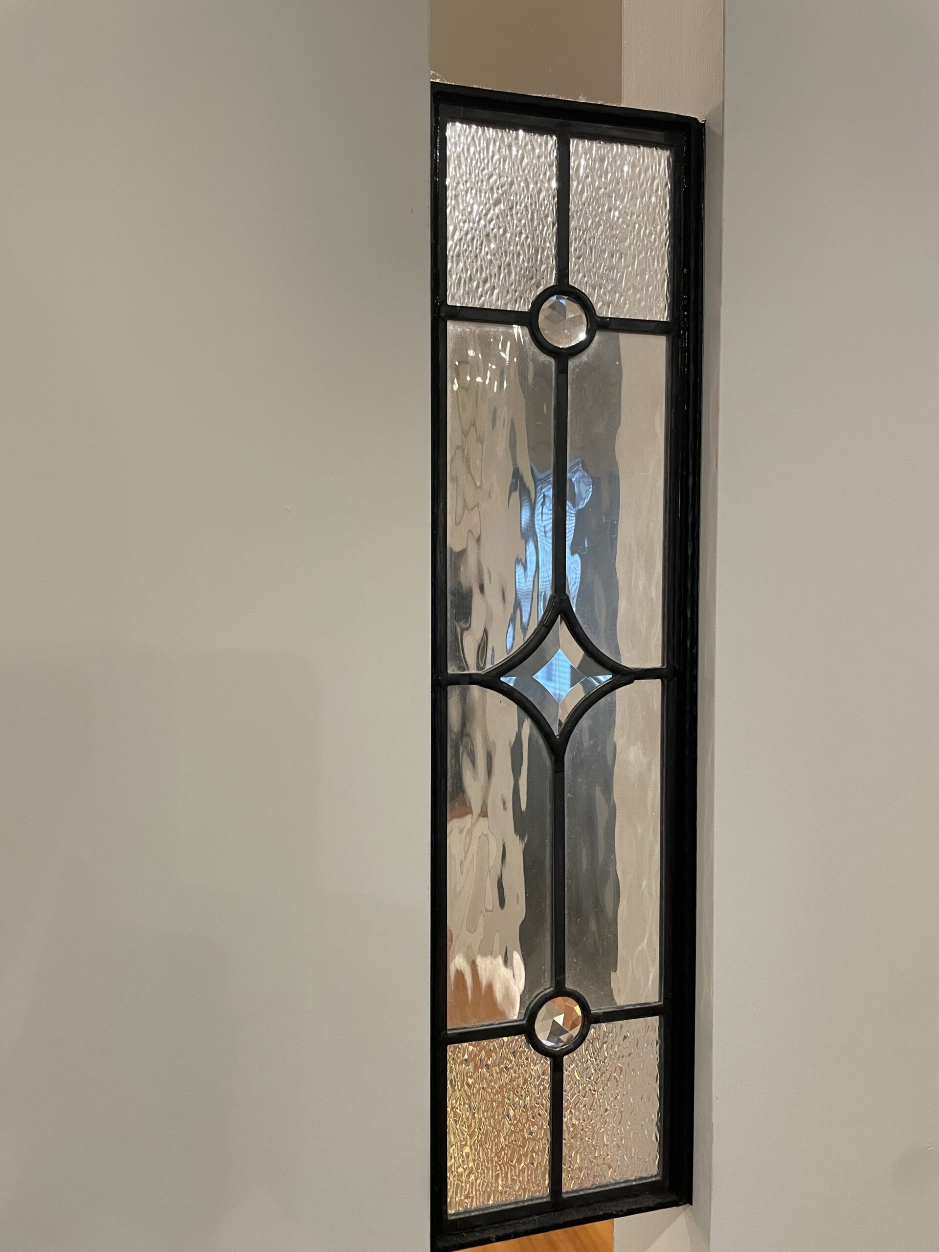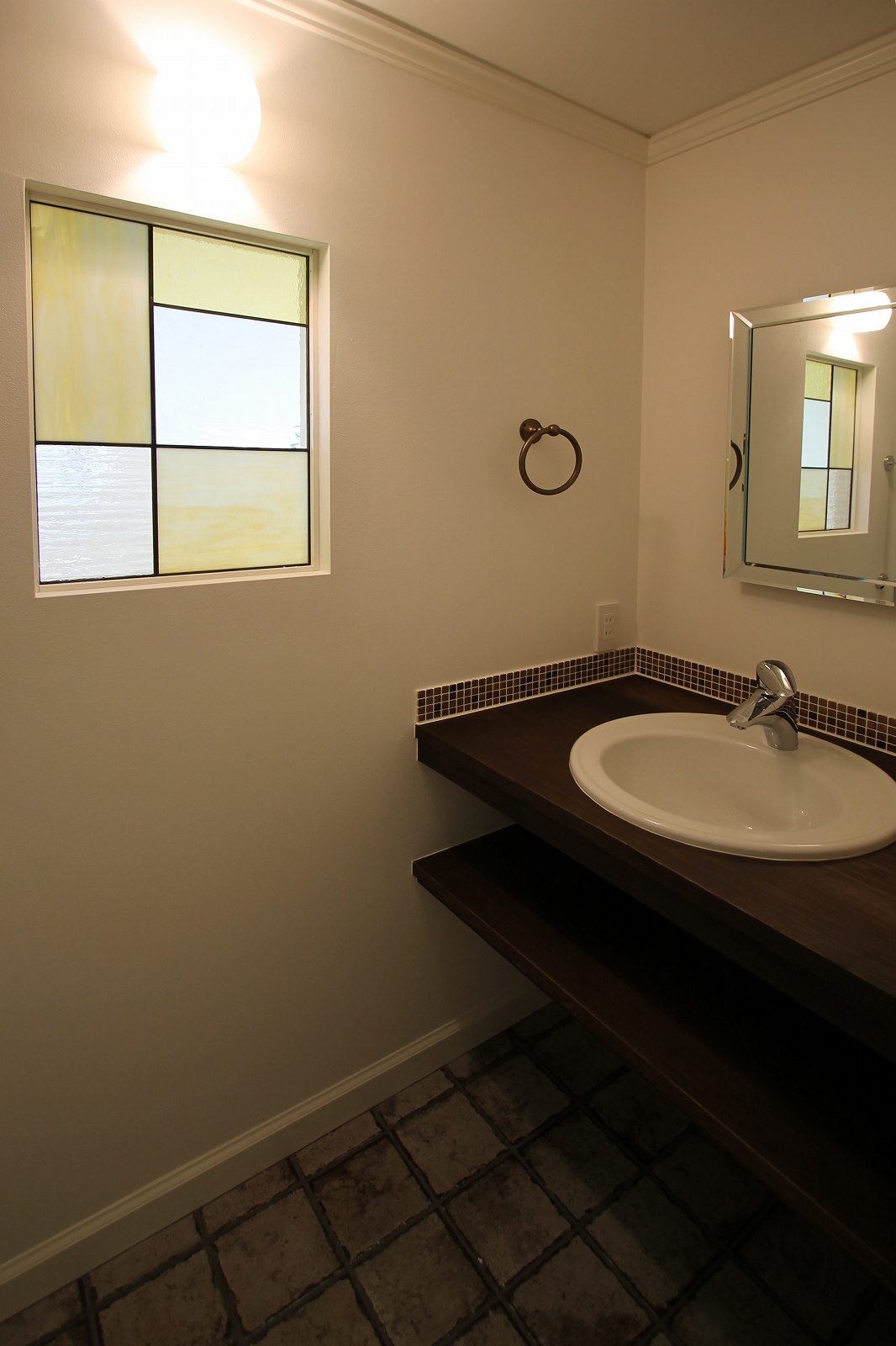 キッチンとトイレに1枚ずつはめ込みました。奥様がデザインされた世界に一つだけの作品。