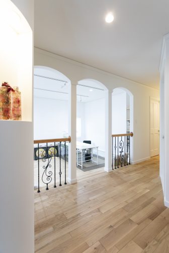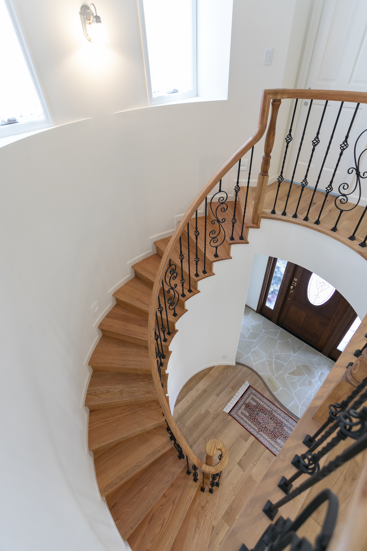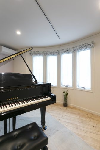 防音室と吹抜け螺旋階段のある、画家とピアニストの白亜の邸宅