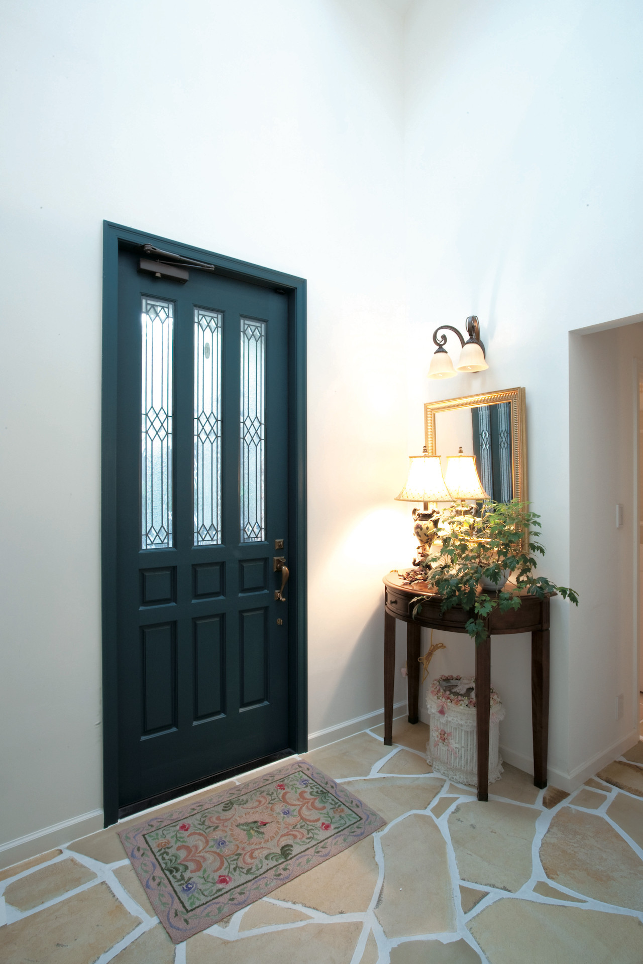 重厚な大きなサイズの木製ドアは、アメリカからの輸入品。