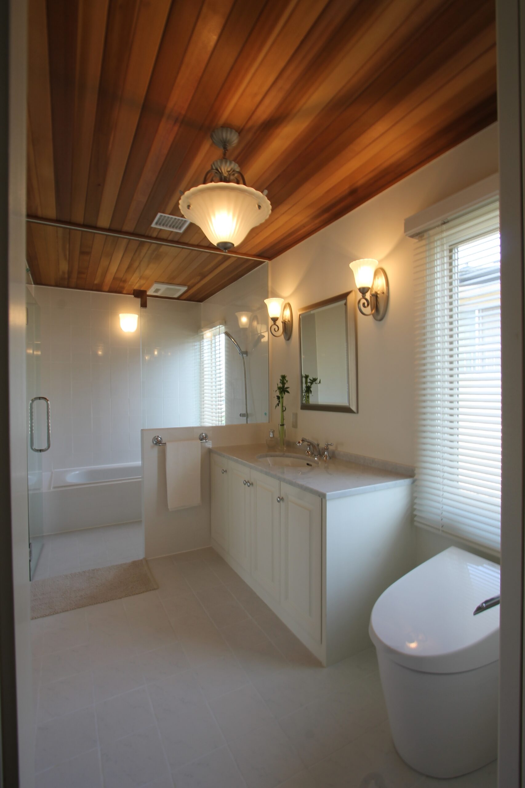 プライベートユースのバス&サニタリーはオールインワンスタイル。真っ白で統一してさわやかに。機能性を重視してデザインもシンプルに仕上げました。